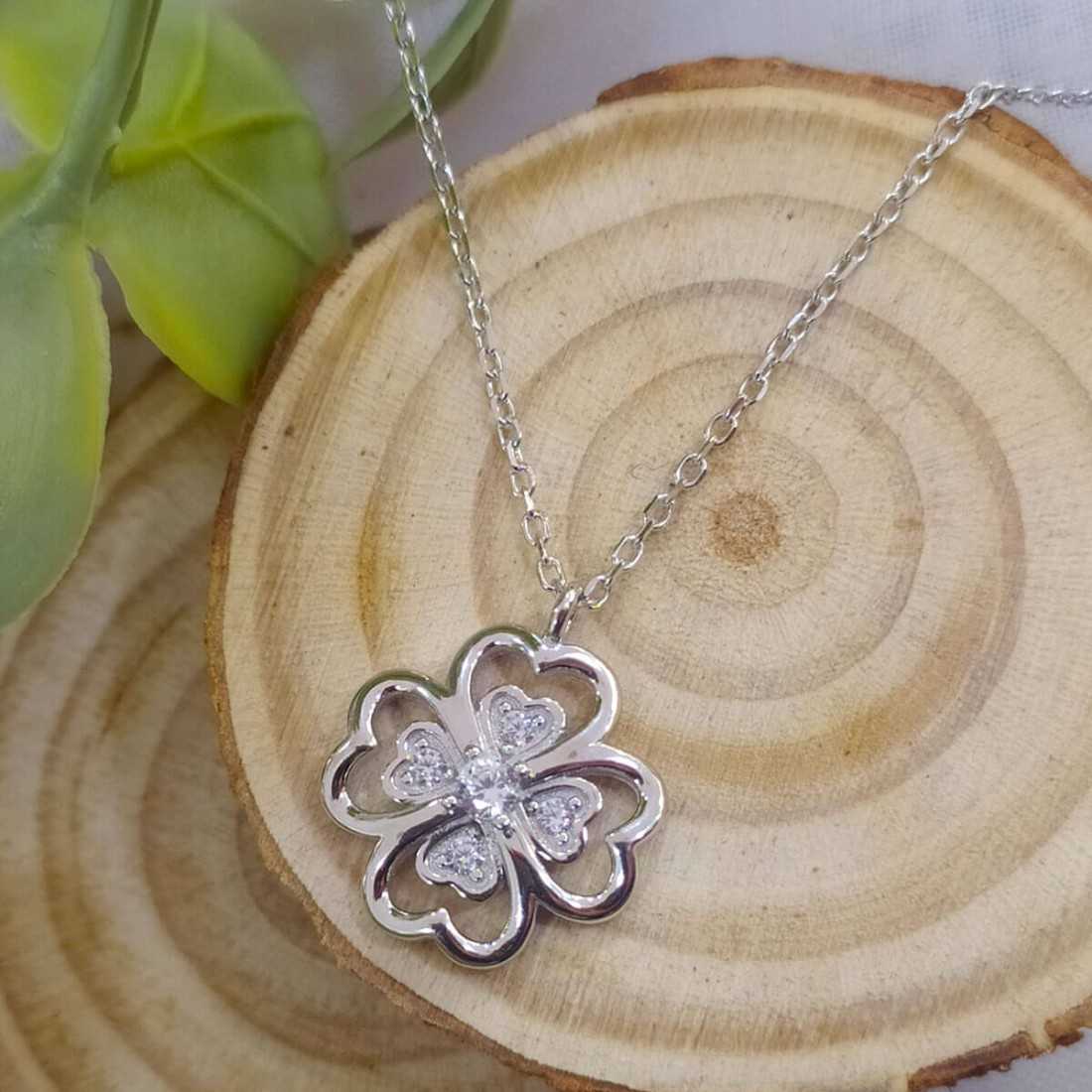 Este collar captura la esencia de la suerte y la elegancia con su diseño de trébol meticulosamente elaborado en plata de alta calidad.