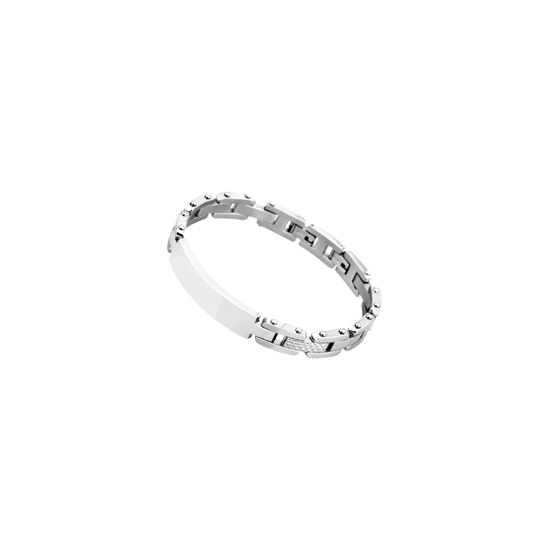 La pulsera esclava de hombre Lotus Style de la colección Men in Black es la elección perfecta para los hombres modernos que buscan una joya elegante y sofisticada. Fabricada en acero inoxidable de alta calidad, esta pulsera ofrece una gran resistencia y durabilidad, garantizando un accesorio que perdura en el tiempo. El diseño se compone de eslabones interconectados, algunos de ellos con un sutil relieve en forma de rombos, lo que le da un toque único y distintivo.